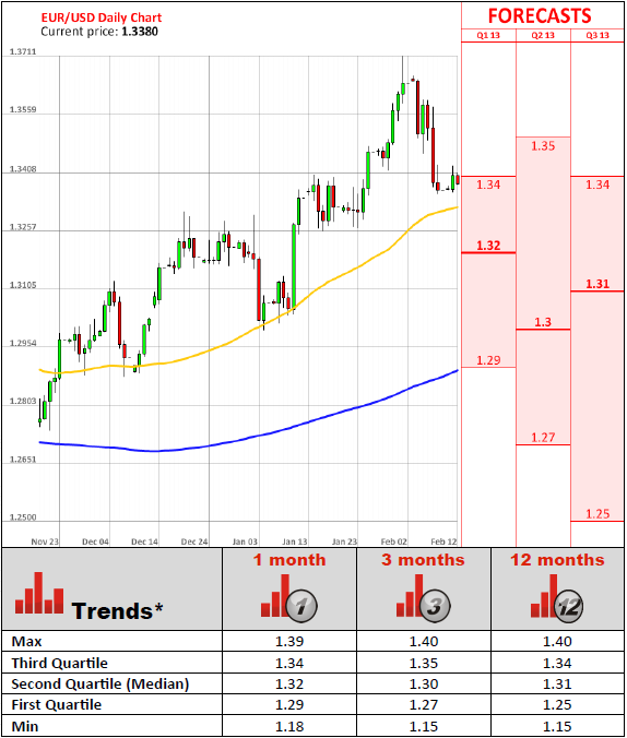 The economic data from the Eurozone due this week will probably reflect the damage inflicted by the sovereign debt crisis. Eurozone's gross domestic product is widely expected to shrink by 0.4% during the last months of 2012. This would be the biggest decline since the first quarter of 2009, when GDP fell by 2.8% in the wake of the collapse of Lehman Brothers. Data will be publisher on February 14. On Monday, Euro-area finance ministers met in Brussels to discuss aid to Cyprus and Greece, as a tightening election contest in Italy and corruption allegations in Spain threaten to weigh on the Eurozone's recovery. In the meantime, fundamentals as well as the strength of the shared currency, are pointing at the stabilisation of the region's economy.