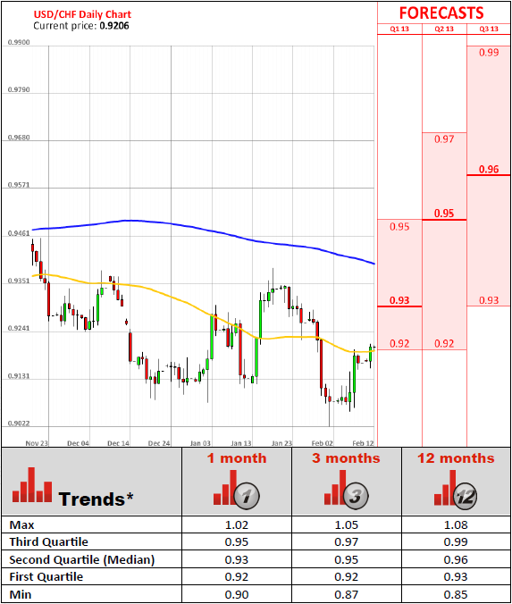 The amount of cash Swiss commercial banks held with nation's central bank turned lower in the week to February 8, a sign that investors are getting more anxious over Eurozone's financial woes. Sight deposits of domestic banks fell to 280 226 million francs last week, down from 281 934 million a week earlier. At the same time the tendency remains negative, proving that the SNB is likely to have less cash to spend to defend the 1.20 per euro cap. Despite the fact, the Swiss francs trades versus the shared currency around 1.23 level, the risks for Europe's economy remain too serious to allow the SNB to change its currency cap. However, it is expected that soon the Swiss National Bank could raise the floor.