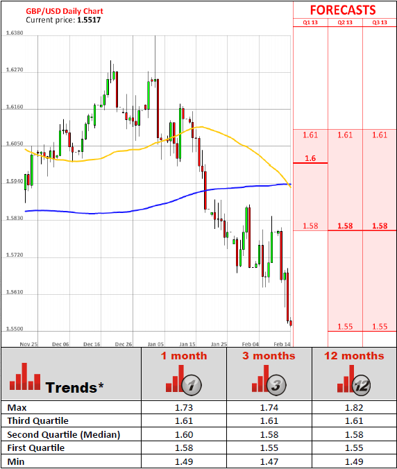 The inflation rate in the U.K. is widely expected to remain stubbornly high for longer than previously thought, while the economy has begun to recover, albeit slowly. The governor of the Bank of England Sir Mervyn King expects the pace of consumer price increase, which currently is 2.7%, to rise to at least 3.0% by the summer and to remain above the Bank's 2% target for two years. The economy shrank by 0.3% in the last three months of 2012, fuelling fears that the U.K. could re-enter recession, defined as two consecutive quarters of contraction, while King predicts a muted economic recovery.