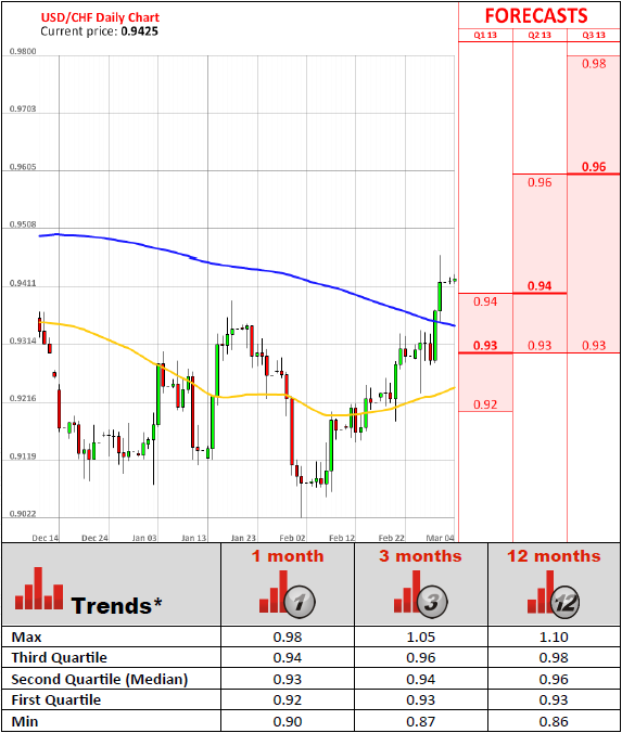 Switzerland's key manufacturing output index grew for a second consecutive month, albeit slower, as a slight appreciation in the Swiss Franc and renewed weakness in the Eurozone dragged on demand. The Swiss Purchasing Managers Index fell to 50.8 points last month, down from 52.5 points in January, below analysts' expectations of a 52.2 reading. Despite the slowdown, a reading still remains above the 50 threshold, which separates growth from contraction. Swiss economy expanded in the last quarter of 2012 by 0.2%, while the KOF barometer of Swiss economic sentiment fell less than expected, giving weight to claims the economy is on the verge of turning a corner. The Eurozone is nation's biggest trading partner and confidence in the Swiss manufacturing sector is directly linked to developments in the region.