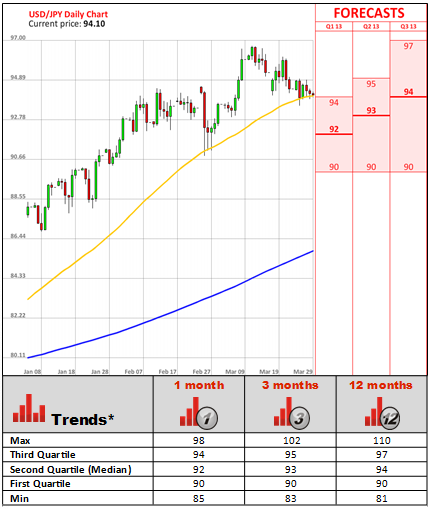 The world's largest economy expanded at a faster pace than a quarter ago, however, still at anaemic rate at the end of last year. The Commerce Department said Friday, that the U.S. economy grew by 0.4% in the October-December quarter, up from 0.1% growth recorded in the previous quarter, but below analysts' forecasts, who claimed for a 0.5% growth. The revision reflected stronger business investment and export sales. Despite the sluggish growth rate, there is hope that growth will accelerate in early 2013, even despite higher taxes and cuts in government spending.