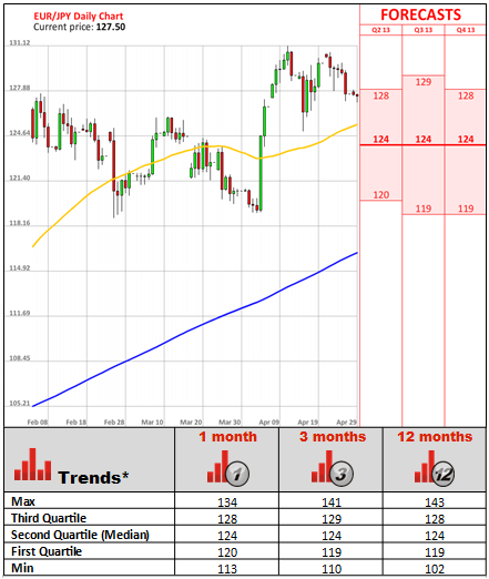 The Bank of Japan led by Haruhiko Kuroda said it doesn't expect consumer prices to reach its stated 2% inflation target within the two year period, but said they may rise to around that level by end-March 2016.The BoJ project inflation rate to stand around 1.9% in April 2015, raising its forecast from 1.4% estimated earlier. In its report Japanese central bank also said the economy would start picking up by the middle of this year due to bold measures introduced earlier, and lifted its forecast for real gross domestic product growth to 2.9% from 2.3%. In the meantime, no board member judged that additional easing is needed now, while Kuroda assured that policy adjustments would be made if necessary.