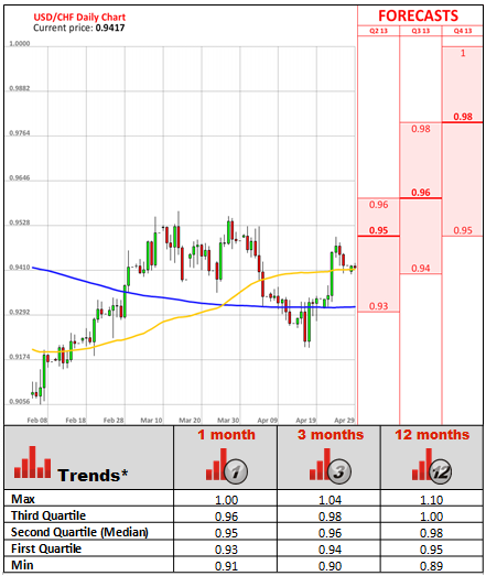 Swiss economic indicator, which was designed to predict the direction of the economy over the following 6 months, improved slightly in April, recovering after five months of declines, suggesting the economic momentum may pick up. According to the KOF Swiss Economic Institute, its economic indicator rose to 1.02 from a revised 1.00 in March, beating analysts' expectations of a 0.98 reading. Swiss economy is expected to grow 1.5% this year, even as the Franc remains highly valued and a further appreciation would have severe consequences for the economy. Earlier this month, the SNB pledged to defend its 1.20 per euro cap.