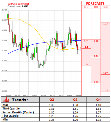 The Eurozone economy is most likely to shrink in the first three months of this year, suffering the longest recession since the single currency's creation. On Wednesday the European statistics office Eurostat will show that the region's gross domestic product contracted 0.1% in the first quarter of 2013, after a 0.6% contraction in the preceding quarter. While Mario Draghi's pledge to save the shared currency by any means necessary has eased financial-market tensions, economic confidence standing at a four-month low and record high unemployment highlights the risk that the slump will persist. Also Monday, the Eurozone's policy makers expressed a willingness to think of new ways to revive their ailing economy, as they confronted fresh pressure from the U.S to take action.