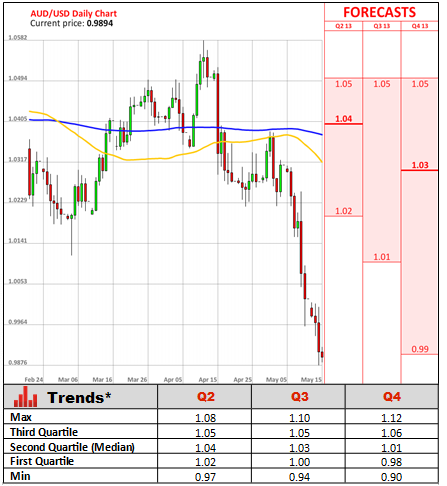 Australian government unveiled its annual budget on Tuesday, which showed a $18 billion deficit, while analysts forecasted a figure of around 20bn Australian dollars ($20bn) for the financial year 2013-14. Despite the fact, the world's two largest rating agencies kept Australia's top notch AAA rating due to the country's low public debt and prudent fiscal policy in the medium term. During the last policy meeting the RBA has cut its benchmark interest rate by 0.25% to 2.75% as the economy has been affected by weaker global demand for commodities, having a negative effect on Australia's growth and tax income. Even despite another cut, interest rates remain well above rates in other developed countries, meaning it should continue to lend the Aussie Dollar some support.