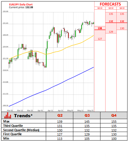 The Japanese government upgraded its growth forecast on Monday for the first time in two months, a sign that growth is accelerating as exports and factory output are picking up. In its monthly report, the government led by Shinzo Abe raised its assessment of exports, industrial production and corporate earnings. The announcement of a record quantitative stimulus and determination to reach the 2% inflation target within two years already helped the country's exporters to recover. The nation's gross domestic product grew at an annualized pace of 3.5% in the first three months of the year, mostly helped by the increase in exports as the Japanese Yen has slumped to a 4-1/2 year low versus the U.S. Dollar. The latest figures are reflecting a sharp improvement from the 1% growth rate at the end of last year, and recovering from six months of contraction.