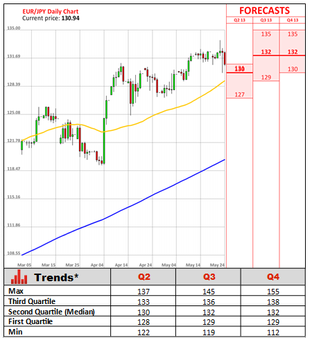 The world's third largest economy is picking up as the demand in the neighbouring countries improves, but still remains weak within the country, the Bank of Japan said during its monthly policy meeting. The BoJ has not introduced any shifts to its monetary policy, meeting analysts' expectations. Japan's gross domestic product expanded 3.5% last quarter, however improvement in increasing exports and boosting corporate investment and wages has lagged. The sharp drop in the Yen helped stabilize exports, which surged 3.8% in April from a year earlier, but it is also accentuating increasing import costs. Haruhiko Kuroda has made a recovery of the nation's export industries a priority of his administration and there are already signs of improvement, however longer-term structural reforms are needed to boost Japan's international competitiveness. The fact the yields on Japanese 10-year bonds touched 1% for the first time in a year is posing certain risks to the recovery.