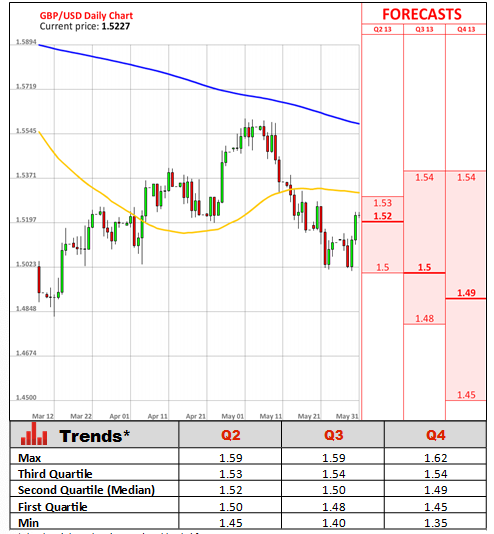 Earlier this month the Bank of England Governor Sir Mervyn King said that economic recovery is in sight as officials raised their forecast for growth. In the meantime, mortgage approvals probably jumped to 54,600 in April from 53,504 in the preceding month.