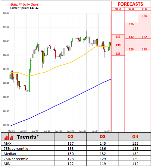 Since the last year's elections, the nation's policymakers have introduced bold measures aimed at reviving growth in Japan after years of stagnation. The BoJ has doubled its inflation target, aiming to reach 2% target in two years, and introduced a record stimulus programme, claiming its readiness to double the country's money supply, injecting trillions of Yen into the money market. So far, these measures have helped to depreciate the Japanese Yen versus the U.S. Dollar by almost 25%, boosting exports and making Japanese firms more competitive in overseas markets. Meanwhile, the upward revision in the growth figures helped lift investor morale, with the Nikkei index rocketing nearly 5%.