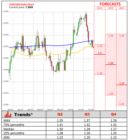 Under Mario Draghi's leadership the struggling 17-nation economy is starting to show some signs of stabilization in business and consumer sentiment, while the overall economic outlook still warrants an accommodative stance. Despite brightening outlook, German Bundesbank expressed its strongest scepticism against the OMT programme. Earlier in June Draghi defended his views and instruments in Germany's Federal Constitutional Court, as German authorities put under scrutiny the effectiveness of the OMT. Mario Draghi also assured that the ECB's main objective is to maintain price stability in the region, however, he agreed that differences between the ECB and German central bank are inevitable.