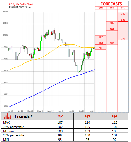 Amid speculations of tapering the stimulus programme, known as quantitative easing, the yield on the 10-Year Treasury note surged up to 2.61% during the week, from as low as 1.63% in May. Therefore, officials at the Federal Reserve are trying to calm investors and market participants by emphasizing that the bond purchases will not halt until the world's largest economy will strengthen enough. Three officials said that the Fed's controversial QE could continue at full blast if the labour market does not improve substantially.