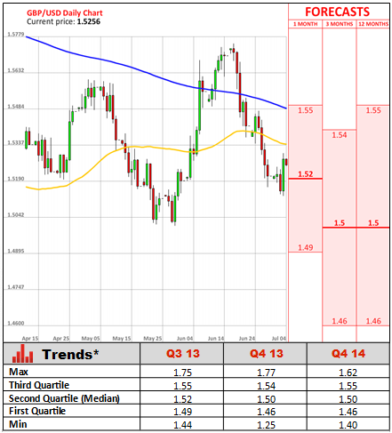 The number of opening of new businesses at the sector climbed at the strongest pace in six years, boosting backlogs and hiring to the highest level since August 2007. Moreover, sentiment stood at the highest in 14 months. Earlier this week data showed that Britain's manufacturing sector expanded at the fastest pace in almost two years, while construction activity improved for a second consecutive month in June, cementing expectations that the recovery is gaining momentum. All these figures are diminishing signs that the BoE may expand its asset-purchase programme or cut its benchmark interest rate during its first policy meeting under Mark Carney leadership.