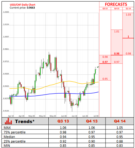 In a separate report the Swiss National Bank said that its foreign-currency reserves fell last month, as the Swiss Franc appreciated against both the Euro and the greenback. Holdings dropped to 434.9 billion francs, down from a revised 444.1 billion francs recorded in May. Since September 2011, when the SNB has imposed a ceiling of 1.20 per Euro, it has amassed foreign-currency reserves, which are equal to around 75% of the nation's annual economic output, as a result of its efforts to defend the cap. Earlier this month, the SNB's President Jordan claimed bank's readiness to continue making market interventions if necessary to prevent deflation and avoid falling into a recession.