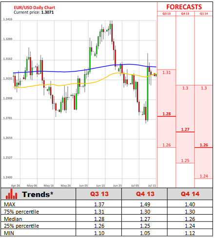 As there are practically no signs of the improvement in the economy, the International Monetary Fund now expected the Eurozone to shrink 0.6% this year, and to recover in the next one, with the economic output expanding 0.9%. A recent drop in industrial production, which is a leading indicator of economic health as production reacts quickly to changes in the business cycle, is pointing at sluggish domestic demand and exports.