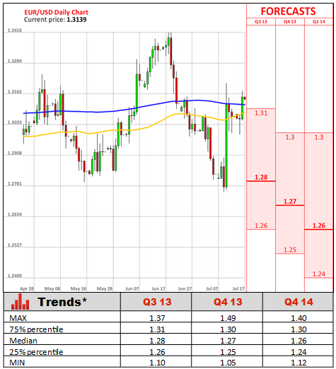 The nation's industrial output, factory orders as well as exports all slid in May. Even despite a slight improvement in the labour market and Ifo business confidence, the European Central Bank says that risk to the economic outlook in the Eurozone, which is Germany's biggest trading partner, remain on the downside. Hence German GDP expanded 0.1% in the first quarter, recovering from a 0.7% contraction in the last quarter of 2012, adding to concerns that possibility for another quarter of negative growth is high.