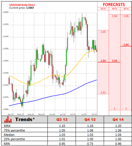 Earlier this week, the newly-appointed Bank of Canada Governor Stephen Poloz held the benchmark interest unchanged at 1% and signalled that consumers and homebuyers should not worry about borrowing costs, which are likely to stay low for the foreseeable future. The nation's central bank expects economic growth to be choppy in the nearest future, due to several factors, including flooding in Alberta and construction strike in Quebec. According to latest estimates, Canada economic output should register a sluggish 1.8% growth this year, and accelerate to 2.7% in the next year.
