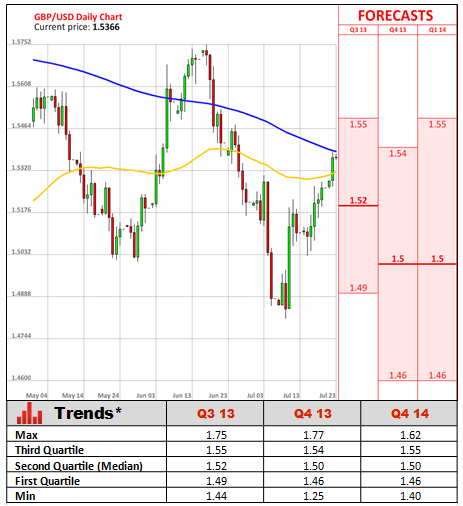 Prime Minister also assured that in case of a victory in 2015 he will most probably cut taxes, however, he will not be able to prevent a tax hike in case the economy deteriorates. The U.K. economy avoided falling into another recession in the first quarter, as the GDP expanded 0.3%, and in addition to that, other sectors are continuing gaining momentum. Moreover, data to be unveiled on Thursday are expected to show the economy accelerated further in the second quarter, with economic output growing 0.6%, the most since 2012. Both Cameron and the Chancellor of the Exchequer George Osborne are counting on strong economic performance to boost support for their Conservative party, also known as the Tories, which is currently losing to the opposition Labour Party, according to recent polls.