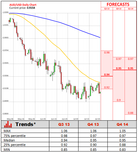 Report also showed the core inflation rate jumped 0.5% from the previous quarter, meeting analysts' expectation, while the weighted-average measure of inflation, a second core gauge that excludes the largest price ups and downs, increased 0.7% above estimates of a 0.5% gain. The figures were mixed as falls in costs of domestic holiday travel and accommodation and petrol were offset by gains in medical and hospital prices, as well tobacco, furniture and home purchases. It leaves the door open for the RBA for further cuts soon, as the inflation outlook may provide some scope for more easing. In July the Reserve Bank of Australia left its monetary policy on hold, saying the depreciation in Aussie may continue as well as rock-bottom borrowing costs are likely to bolster the local economy further.