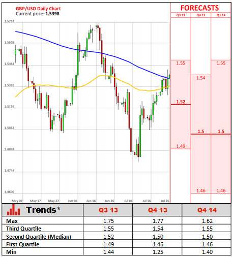 The pace of growth of British economy accelerated further in the second quarter, as all sectors showed expansion for the first time in three years, a sign measures introduced by the government and the central bank are contributing to growth. The Office for National Statistics published its first official estimate for the second quarter economic output, which showed that the GDP expanded 0.6% between the first and second quarter, up from a 0.3% growth registered in Q1 and in line with analysts' estimates. The economy was supported by all industries, and the last time all the pillars of the domestic economy rose was in the quarter of 2010. Moreover, the country has not seen two consecutive quarters of growth since the middle of 2011.