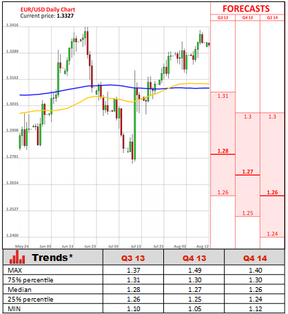 Still, the data underscored the challenges French President Francois Hollande is facing to revive growth. Hollande has pledged to reverse the increase in unemployment by the year end, which appears to be highly unlikely. Jobless rate rose to 10.8 in Q1 and it is widely believed that it will not peak until at least next year. The IMF urged Hollande's government to accelerate economic reforms, as rigid labour market, high taxes and inefficient public spending are weighing on the economy. The IMF expects the French economy to contract 0.2% in 2013, after being flat last year, and will expand 0.8% in 2014.