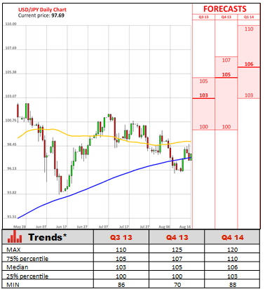A bunch of mixed economic reports from the U.S. was released on Thursday, reinforcing a view it is too early to speak about tapering of Fed's stimulus, as risks for recovery are still high. The number of unemployment claims reached the six-year low, signalling the labour market continues to mend. The number of initial jobless claims dropped by 15,000 to 32,000 in the week ended August 10, the fewest since October 2007, and down from a previous week's revised 335,000 figure. The less-volatile four-week moving average stood at 332,000, compared with 336,000 in the preceding week. The pace of firings slowed, reflecting a pickup in hiring, which is likely to bolster household incomes and spending, which accounts for the majority of overall economic activity.