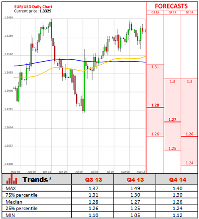 Data also showed that exports in June surged 3.0% from May, while imports increased by 2.5%, the strongest gain since January. A wider trade balance indicates that shipments are one of the factors driving the economy back to growth in the second quarter. On Wednesday report showed combined gross domestic product of the area that has Euro in circulation, expanded 0.3% in the second quarter, up from a 0.3% contraction in the first quarter, with its two biggest countries both revealing surprising strength. Besides in case of sustainable growth in imports, it would be a positive development for the currency area's trade partners. Despite upbeat figures, a pickup in demand is expected to be weak and patchy.