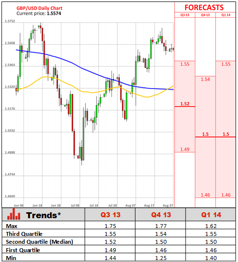 During a speech in Nottingham on Wednesday the Bank of England Governor Mark Carney is expected to reaffirm his commitment to keep borrowing costs at record low until more than 750,000 new jobs are created. Meanwhile, that is not expected to happen earlier than 2016. Carney will face the scepticism of representatives of the CBI East Midlands, Derbyshire and Nottinghamshire Chamber of Commerce and East Midlands Institute of Directors, who are expressing concerns over earlier-announced forward guidance, saying interest rate will go up sooner rather than later. Friday's upward revision of the GDP growth gives even more grist to their mill. Additionally, since the announcement of the forward guidance, the yields on government bonds have risen sharply and the British Pound has strengthened against its major peers, reflecting expectations of market participants of a rise in rates.