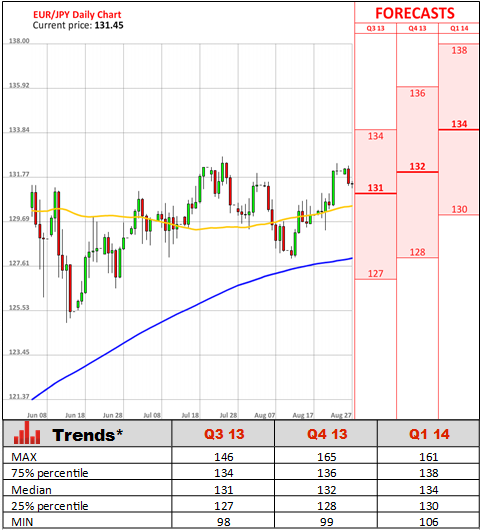Separately, the Economy Minister Akira Amari expressed his view that Shinzo Abe will consider an implementation of the widely discussed sales-tax hike by early October, before a meeting of Asia-Pacific leaders in Indonesia. A commission comprising Japanese policymakers, academics and even business leaders is set to begin on Monday to consider whether the world's third largest economy is strong enough to withstand a planned increase in sales tax. Earlier, figures showed the economy expanded 2.6% in the second quarter, supporting a case for an increase.