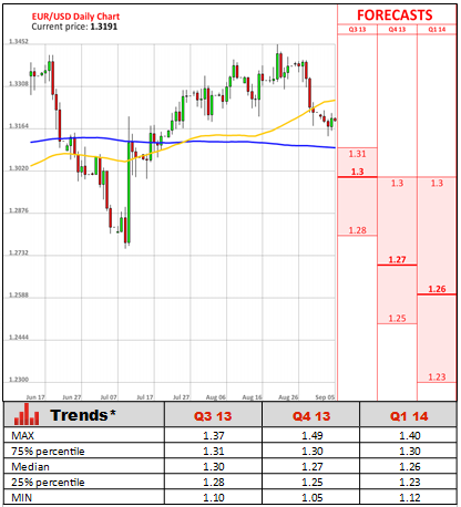 In a separate report Markit Economics said the Eurozone services PMI eased to 50.7 in August, below analysts' expectations of 51.0 and down from July's 50; however, still showing an expansion in the sector. Moreover, the PMI Composite fell to 51.5, compared with the previous month's 50.5. Nevertheless, service sector businesses registered the first increase in business activity for almost two years. Furthermore, trade volumes at Eurozone retailers inched higher 0.1% in July, albeit also missing estimates. Annually, the Retail Sales Index tumbled 1.3% in the Eurozone and 0.3% in the broader European Union. Wednesday's results are suggesting growth, albeit still modest and the recovery is fragile, however it is spreading to some of the region's weaker countries.