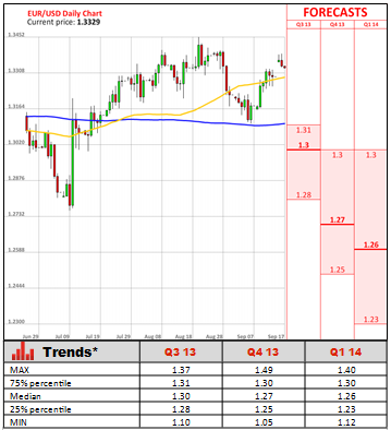 With economy showing signs of improvement, labour market is still a major headache for the European policymakers. Hence, workers in the Eurozone are still suffering a drop in pay in real terms, as wage growth lags the rate of inflation. On Monday the Eurostat said workers' pay advanced 1.1% in the second quarter, from the corresponding period a year earlier, down from a 1.8% annual rate recorded in the prior quarter and the slowest pace since the third quarter of 2010. Meanwhile, consumer price growth decelerated to 1.3% annually in August, from 1.6% registered in July. The latest reading is still underneath the central bank's target area of a 2% target level. Despite weak figures, Eurozone authorities are expecting lower costs faced by companies will make exports more competitive, reducing some of the enormous gaps in wealth between Eurozone economies.