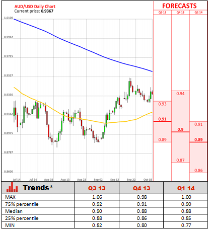 The RBA also said consumer prices remain consistent with the medium-term target, while the domestic currency, which still remains highly overvalued, stays almost 10% below the April's level. Furthermore, retail sales climbed more than expected in August, while housing prices soared to a record high. Under Tony Abbott's leadership the economy is likely to be rebalanced from waning mining investment, as the government has already pledged to implement structural reforms. Amid these news business sentiment surged to the highest since May 2011, with sentiment lifting in all industries. And while traders are betting on another rate cut until December, the latest data is suggesting the Oz economy will start gaining momentum in the nearest future.