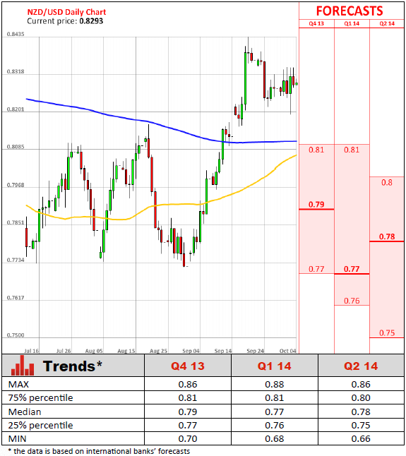During the last policy meeting the Reserve bank of New Zealand hinted at a possible rate hike in the next year in order to curb the inflation; however, there are risks now interest rates may rise even faster unless house-price inflation, which expanded at the fastest pace since early 2008, is brought under control. Currently RBNZ Governor Graeme Wheeler expects the borrowing costs to increase to about 4.5% by early 2016. As a result, mortgage rates are likely to reach 7-8%. In case house-price inflation will continue moving higher, larger increases in the official rate would be vital. Earlier Wheeler was reluctant to raise key rate to curb the constantly growing housing prices, as any shifts in the policy that will lead to the appreciation of domestic currency, may hurt economic recovery. Earlier this week the RBNZ imposed limits on property lending, as authorities increased the loan-to-valuation ratio up to 80%.