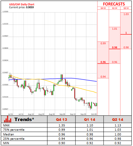 The previous two reports came either in line with forecasts, or even above them, however, the most important indicator still lags to grow. The closely-watched consumer prices fell slightly on an annual basis, suggesting the SNB's cap on the Franc is still vital to avoid deflationary pressures. Prices dipped 0.1% on the year, after staying flat in August. On a monthly basis, however, CPI ticked up 0.3%, supporting the case SNB's measures are working and spreading through the economy. Despite SNB's pledge to defend the cap for as long as it is needed, some analysts warned that amid recent string of upbeat data, and signs of economic amelioration in the global economy, the cap may become increasingly unnecessary as domestic currency could start to lose ground versus the single currency.