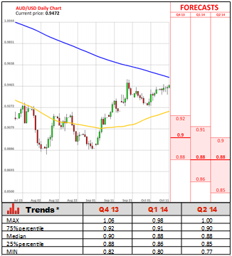 Figures also showed the number of full-time jobs inched higher by 5,000 in September, while part-time employment advanced by 4,100. Even though jobless rate has been hovering around 5% since 2010, the participation rate has been moving in a strong downside trend since it reached 66% in November 2010, the highest level since records began. A similar situation can be observed in U.S. labour market, where unemployment rate is falling closer 7%, level which is considered by Bernanke as a benchmark to start tapering its QE, while payroll-to-population rate is declining as well. However, unemployment rate is a lagging indicator of economic health and it is likely to be last indicators to turn around.