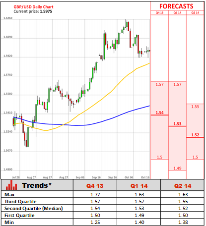 The majority of analysts predicted British consumer prices would ease their pressure last month; however, report from the Office for National Statistics disappointed market participants, as key measure of inflation remained highly above the target level. The annual pace of growth in consumer prices stood at 2.7% from August, defying forecasts for a tick-down to 2.6%. The ONS also said air fares tumbled 18.7%, a figure significantly lower than the 25.2% drop seen a year ago, having an upward impact on consumer prices. The main downside pressure, however, came from motor fuels. Soon after the data release government bond prices dropped further, lifting yields higher- to a three-week high. These data means the pace of growth in consumer prices is still faster than wage growth, which climbed only 1.1% on average over corresponding period. The Bank of England currently aims at inflation of 2%; however, Mark Carney and other policymakers are holding off raising borrowing costs to adjust inflation rate as unemployment rate is still too high. Under the forward guidance, the BoE is considering not to raise interest rates until the jobless rate hits 7% or even below this level. Another criteria is inflation rate, which according to the BoE, if it does not fall below 2.5% in 18 months to two years, it would force policymakers to make shifts in the policy. The last time CPI fell below the benchmark 2% was November 2009, when inflation stood at 1.9%, indicating it would be hard to push inflation below 2.5%, while the situation in the labour market is improving much faster.