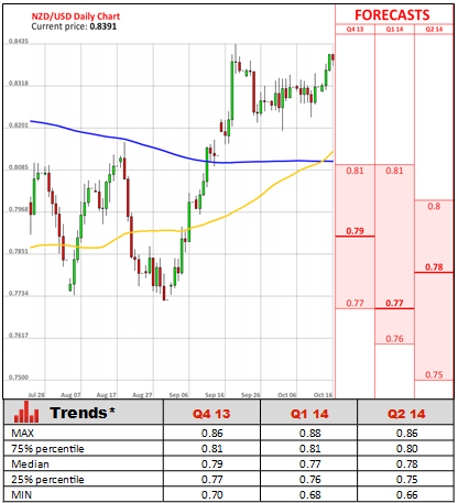 The sticky pace of inflation has allowed the nation's central bank not to hike the official cash rate from a historic-low 2.5% as a bubbling property market has not spilled over into increased consumer spending. The RBNZ appeared to be reluctant to lift the interest rate as it might stoke investors to buy the New Zealand Dollar, further strengthening an overvalued currency. Nevertheless, the RBNZ signalled about the potential key benchmark interest rate hike next year, while analysts predict that the central bank will start lift its key rate already in March. The kiwi traded at 83.91 U.S. cents, from 83.75 cents immediately ahead of the release.