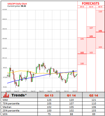 Amid latest economic and political events in the world's largest economy the Federal Reserve is not expected to announce tapering of its stimulus programme during the last three policy meetings. In contrast, the Fed is likely to delay the first reduction of its QE until March 2014 after the government shutdown that weighed on fourth-quarter growth and interrupted the flow of fundamental data. The latest poll conducted by Bloomberg showed policymakers will pare the monthly pace of bond purchases to $70 billion during its meeting on March 18 and 19, down from $85 billion. Furthermore, analysts believe QE will be reduced by $25 billion in July, and completely withdrawn at by October. On the other hand, David Gaud from Edmond de Rothschild Group does not exclude a possibility of QE expansion. This means weaker U.S. Dollar, and in case EUR/USD penetrates 1.37, which is likely to be the last line in the sand drawn by sellers, the pair may rally to 1.40.