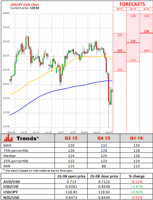 Meanwhile, New York Fed President William Dudley said that prospects of interest rate hike in September "seems less compelling" given the recent market turmoil, hinting that fears of China's economy slowdown are impacting Fed's monetary policy. However, Dudley warned about overreacting to "short-term" market volatility and kept the door open to hiking rates during Fed's meeting on September 16-17.