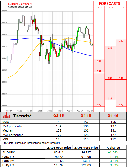 A separate report showed Japan's inflation rate dropped to its lowest level in more than two years in July. The inflation rate in July was 0.2%, compared with the 0.4% a month earlier, hitting the lowest level since June 2013. Core inflation, excluding volatile components, remained flat. The gloomy data, coupled with weak exports due to China's slowdown, reinforces the dominant market view that any recovery from the 1.6% contraction in April-June will be modest.