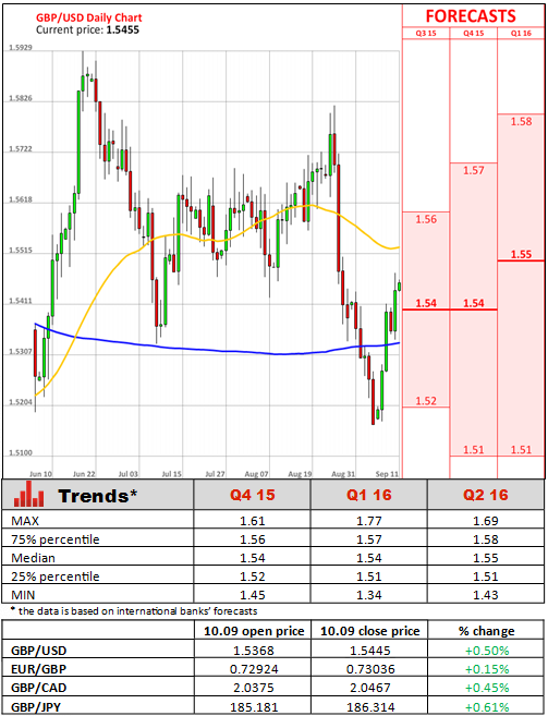 The nine-member Monetary Policy Committee of the BoE voted 1-0-8 to keep its benchmark interest rate at a record-low 0.5%. The only member who voted for an immediate increase by 25 basis points was Ian McCafferty. September's MPC minutes continued to sound more dovish as downside risks to global economic activity and the inflation outlook have increased since the August Inflation Report. The BoE also stuck to its view that consumer prices will start to pick up around the turn of the year, though it noted that a drop in oil prices had increased uncertainty about the near-term outlook. Minutes also showed that there was considerable scepticism about how the strength of the Sterling would feed through to the UK inflation. However, the central bank retained its positive outlook on the UK economy's prospects, despite the concerns over China and the global economic growth.