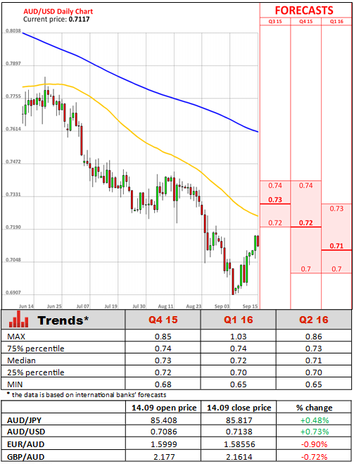 However, the RBA warned China's slowdown and market turbulence increased risks to global growth, underscoring the economic challenges confronting new Prime Minister Malcolm Turnbull. Moreover, the bank also reiterated its concern that any US Fed interest rate hike as soon as this week could spur fresh market upheavals.