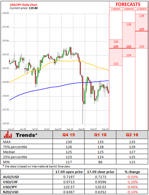 The Fed maintained interest rates unchanged at its crucial September meeting in light of worries about the global economy, financial markets turbulence and tepid domestic inflation. Yet, the US central bank left the door open for a modest policy tightening later this year. Even though the Fed's post-meeting statement said Jeffrey Lacker, the hawkish President of the Federal Reserve Bank of Richmond, insisted on increasing the Fed's target range on overnight rates, the overall tone of the statement was dovish. Fed Chair Janet Yellen said that the main drag on the US economy came from a precipitous decrease in oil prices over the past year, which restrained business investment due to considerable contraction in oil drilling activity. Moreover, Yellen highlighted that a recent decline in US stock prices and an increase in the value of the Dollar already were tightening conditions in financial markets, which could hamper US economic growth regardless of how the Fed acts.