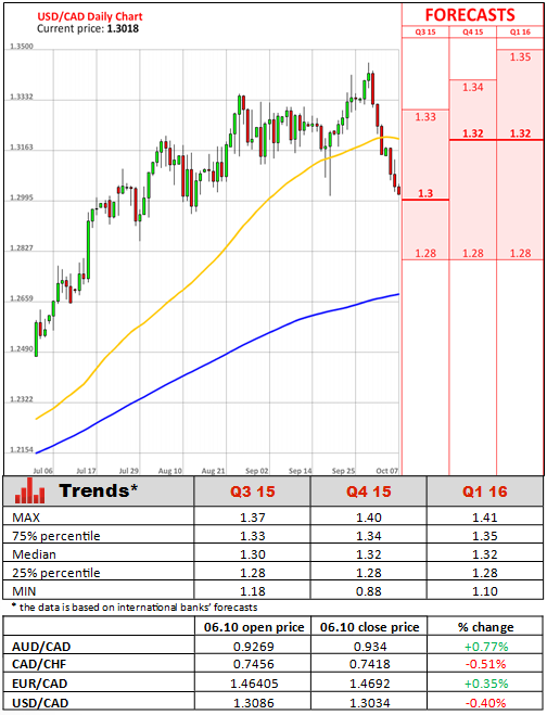 Additionally, activity in all sectors of the Canadian economy slowed down in September, the Ivey survey revealed on Tuesday. The PMI indicator, which is calculated by surveying 175 purchasing managers from all sectors of economic activity, declined from August's 58 points to just 53.7 points last month. The indicator came in worse than estimated as analysts suggested that a decline would push the PMI down to only 54.1 points. Canada has been recently suffering from low oil prices, which dragged the pace of economic expansion lower and resulted in the recession during the first two quarters of this year.