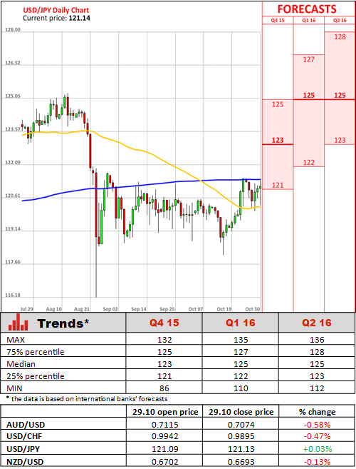 Meanwhile, weekly layoffs data from the US are showing no sign of slowdown in labour market trends, as a measure of jobless claims fell to its lowest level since 1973. As the Department of Labour revealed, initial claims for state unemployment benefits advanced 1,000 to a seasonally adjusted 260,000 for the week ended October 24. The recent economic data from the US confirms the Fed's words that domestic economy is expanding at a "moderate pace", while the possible December's rate hike is still on the table.