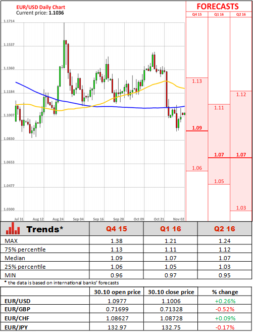 At the same time, consumer prices in the 19-country bloc posted a zero growth in the twelve months through October, following the 0.1% decline in the previous month, when the gauge slid below zero for the first time since March. Core inflation, which excludes volatile items such as food, tobacco, alcohol and energy, climbed 1.0% on an annual basis in October, compared with the 0.9% growth recorded in the preceding month. As inflation in the Euro zone has stubbornly stuck below the ECB's target level of 2%, the central bank may expand or alter stimulus programme to support the region's economy and underpin consumer prices. On top of that, the ECB may also cut deposit rate.