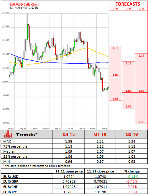 At the ECB's October meeting, Draghi convincingly signalled the possibility of more quantitative easing, sending the Euro to a two-month low against the US Dollar. Also, Draghi spoke about the possibility of negative deposit rates and more asset purchases. However, it still remains unclear, whether the ECB will extend its current 1 trillion euro asset purchase programme beyond next September, or ramp it higher by increasing the monthly amount it purchases.