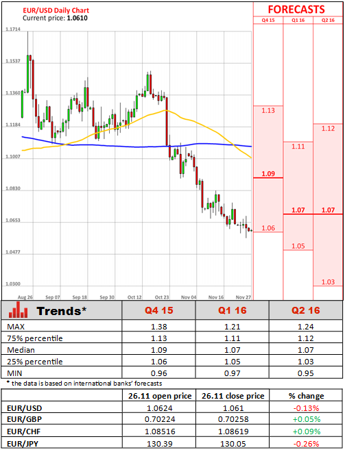 In the twelve months through September, GDP growth added 3.4%, compared with the second quarter's 3.1% expansion. Last year, the Spanish economy grew 1.4%, while this year the government is predicting a 3.3% GDP growth. Nevertheless, the economy is facing a number of headwinds. The jobless rate in Spain remains the highest in the currency bloc after Greece, while the European Commission warned that Spain is likely to fail to meet the agreed target to bring its budget deficit down to 4.2% of GDP from 5.8% of GDP last year. Moreover, Spaniards are heading to a December 20 general election, in which the current government of Prime Minister Mariano Rajoy is seeking for re-election.