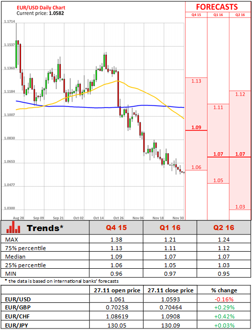 Meanwhile, confidence in the Italian manufacturing sector continued to fade in November. The manufacturing sector confidence index declined to 104.6 in the current month, down from the revised 105.7 in October. The manufacturing PMI climbed to 54.1 last month.  At the same time, the Greek economy shrank both on an annual and quarterly basis in the three months through September. Greece's third quarter GDP declined 0.9% on quarter, down from the 0.4% growth in the April-June period. In annual terms, the economy posted the same decline, after the 1.3% rise.