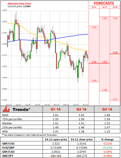 Minouche Shafik, Bank of England Deputy Governor, said she would not vote for an interest rate hike if there is no evidence of sustained growth in wages. After Shafik said she would "proceed with caution" when considering to wean the British economy off the crisis-era level of interest rates, the Pound dropped versus all of its 16 major counterparts, halting its two weeks of rally against the US Dollar. The UK currency also came under pressure as crude oil in New York fell below $35 per barrel for the first time since 2009. The Monetary Policy Committee said last week that low oil prices and sluggish wage gains are raising risk that price growth will take longer to pick up than they currently estimate. A report later in the day is expected to show the UK inflation was just 0.1% in November, far below the central bank's 2%. Shafik said that she expected the recent strength of Sterling to act as a drag on inflation for some time to come.