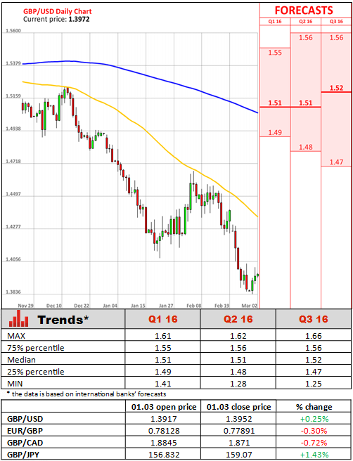 Moreover, recent data from the Office for National Statistics showed that the manufacturing sector dragged on Britain's economic growth during the final quarter of 2015, with the economy reliant on the service sector and consumer spending. The total UK gross domestic product grew 0.5% in the December quarter, with the services sector and domestic consumption being the only two drivers supporting the economy. Markets will now await fresh PMI data on the services sector due on Thursday. Expectations ahead suggest activity slowed slightly in February.